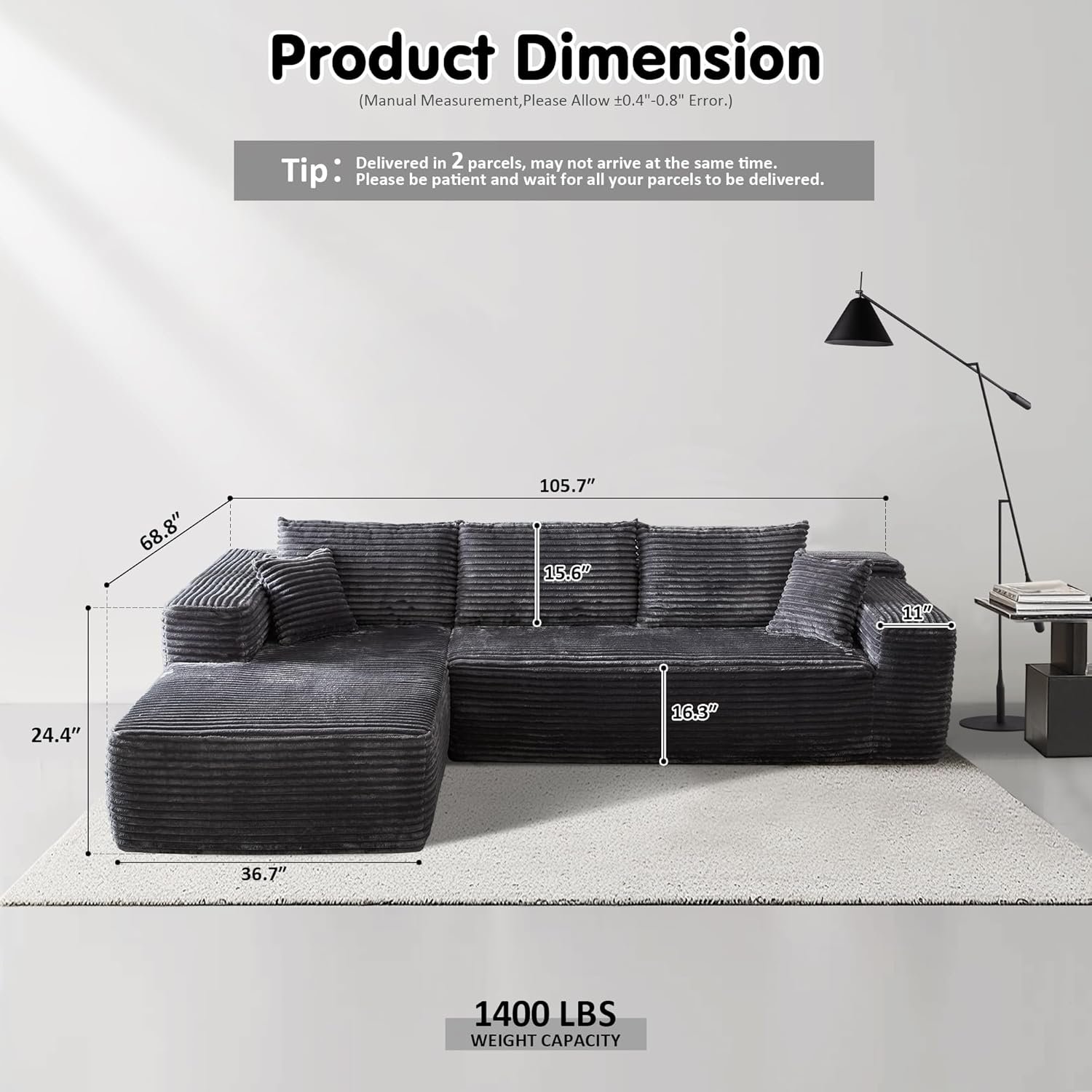 Modular Sectional Sofa:Discover the versatility of our simplified style modular sofa, designed for flexible configurations to fit your needs. This minimalist L-shaped sectional set maximizes space when placed against a wall. Composed of two chic pieces, this living room set invites you to customize your comfort and style