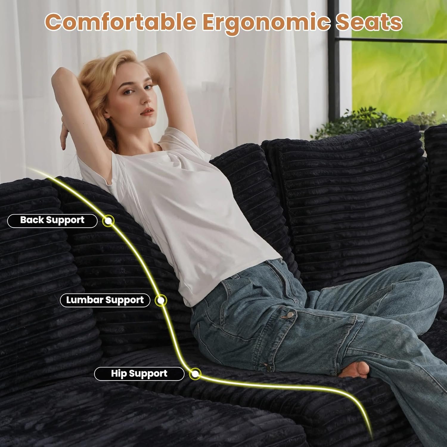 Versatile Modular Sofa Couch: Modular sectional sofa couch allow different households to move and reassemble freely for flexible combination, customized DIY combination transforming into an L-shaped, U-shaped V-shaped or sofa bed that suits your space and style. The more seat modular you add, the greater opportunity that you get to enrich and shape your life space, perfect for movie night, parties or home theaters