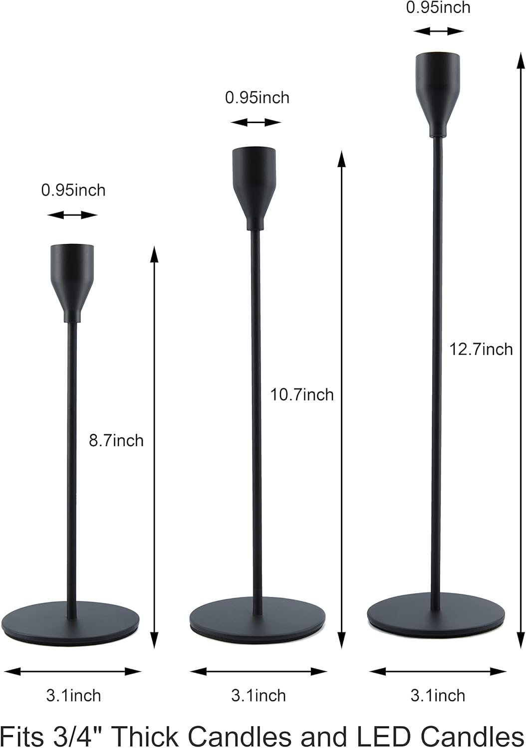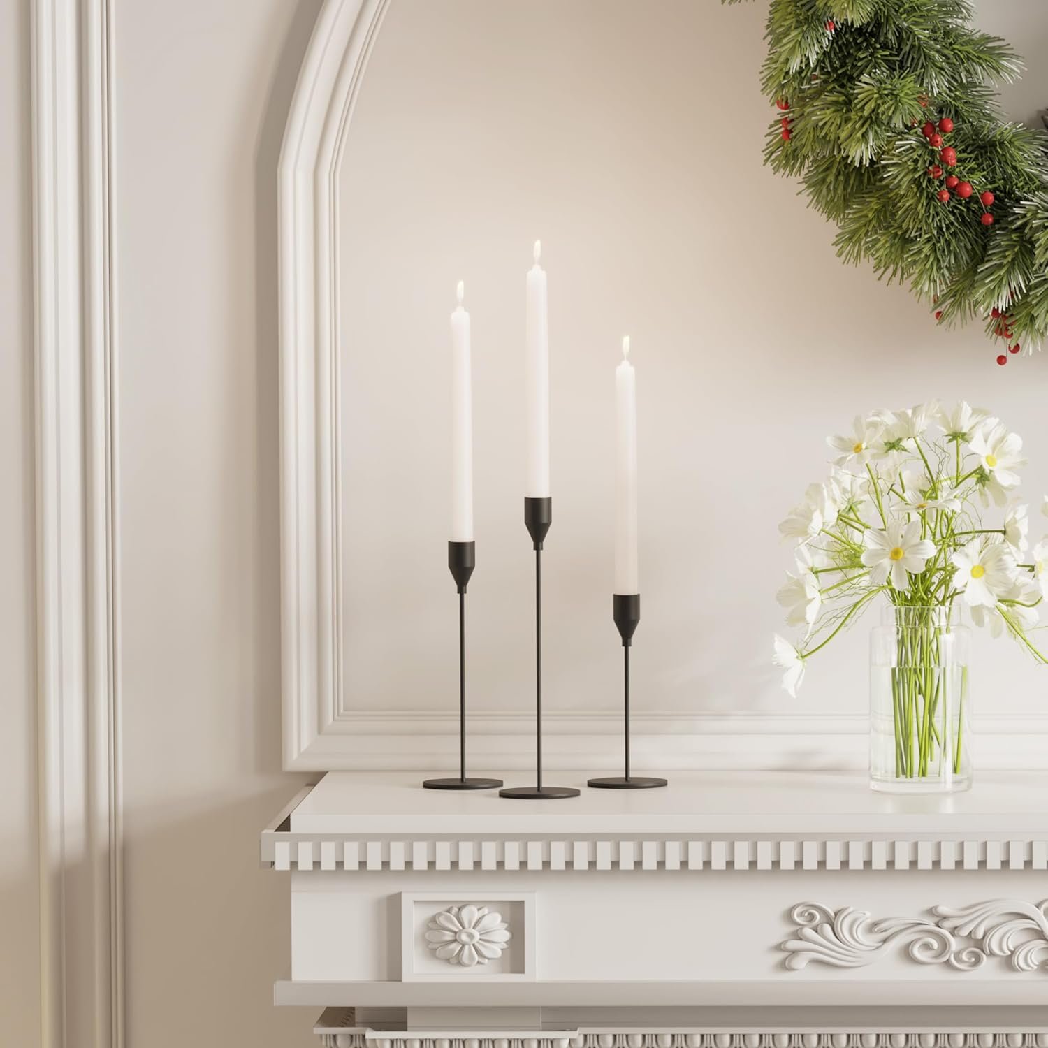 Matte Black Taper Candle Holders, Set of 3 Metal Candlestick Holders for Candle Sticks Holder Decor, Ideal for Mantle Table Centerpiece, Weddings, Dining, Housewarming Gift & Anniversaries