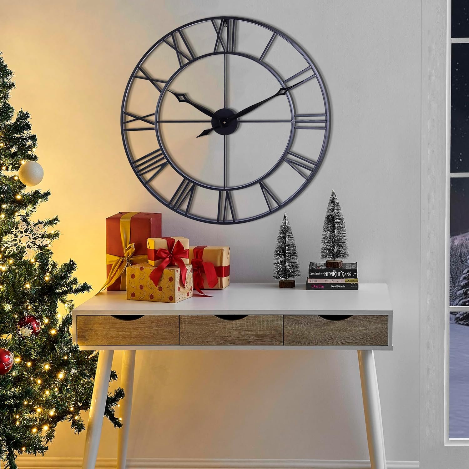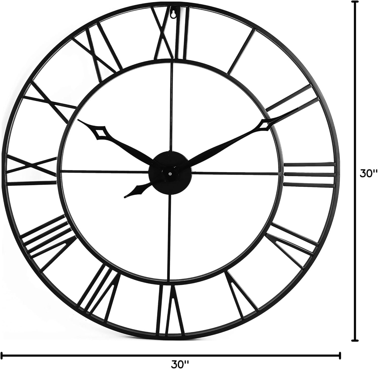 CLXEAST 30 Inch Large Wall Clock Modern, Oversized Roman Numeral Decorative Black Metal Wall Clock for Living Room Decor,House Warming Gifts New Home,Gifts for Women