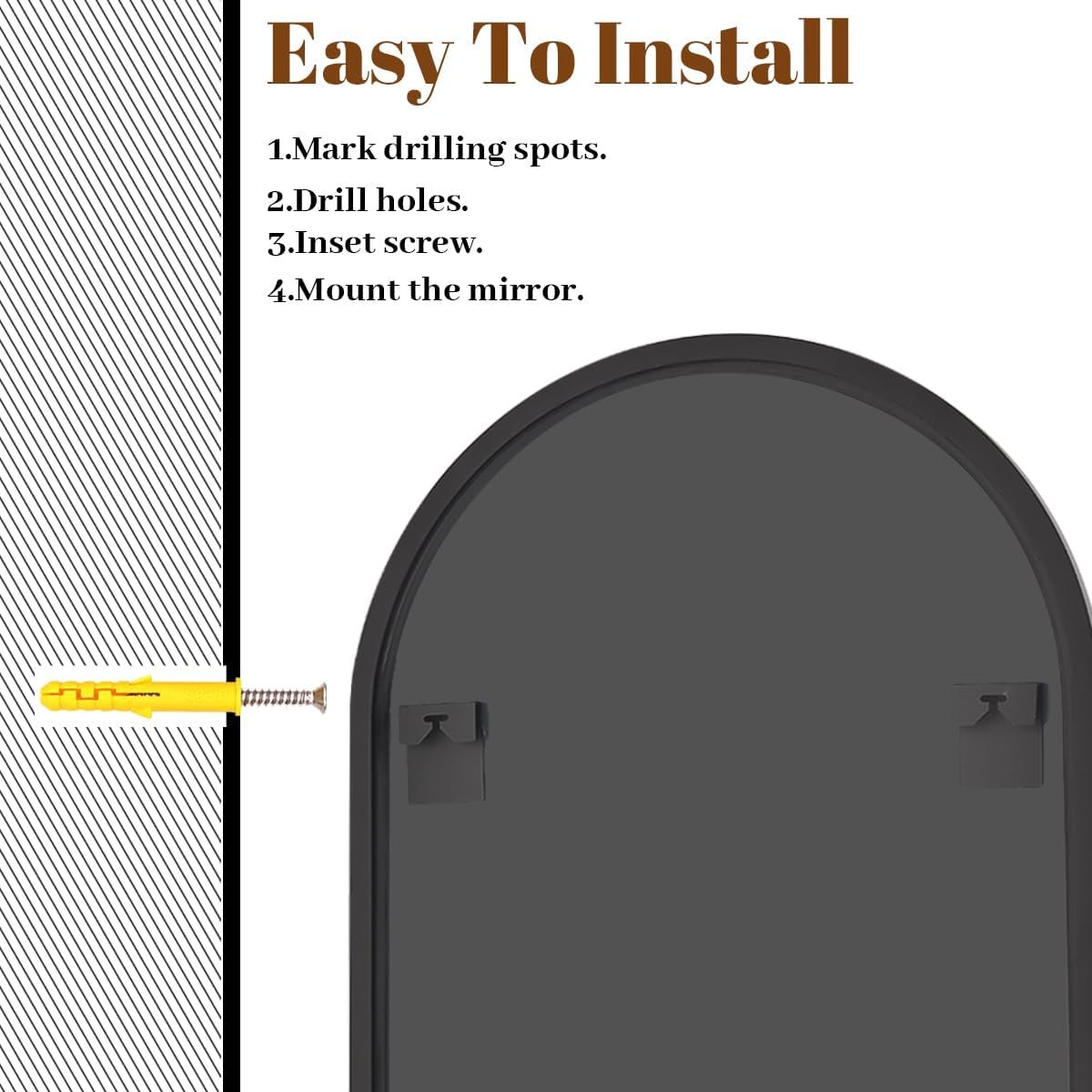 Easy To Mount: Includes instruction and installation accessories. The pre installed hooks on the back of the arch mirror can easily be hung on the wall of the master bathroom, living room, bedroom, or entryway hallway