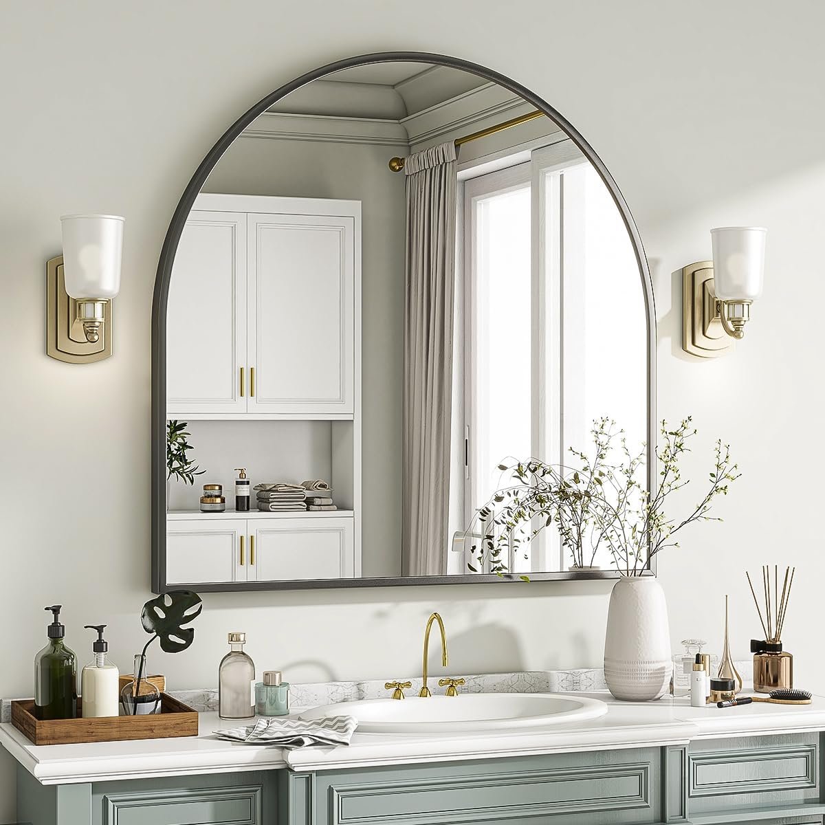 Metal Frame: The classic black arched wall mirror with the aluminum alloy frame is lightweight and an ideal hanging mirror. The arched curvature design adds a touch of elegance to your bathroom