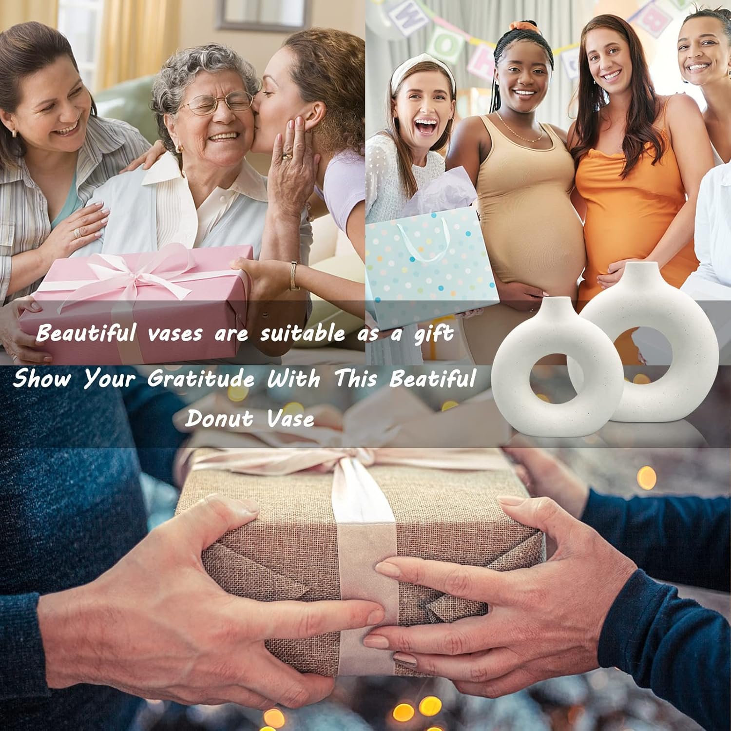 已注册专利(别浪费钱时间🌷【UNIQUE SHAPE】The surface of the ceramic vase is unglazed frosted texture, the hollow center design and white color add a modern geometric beauty to your home decoration, the unique shape reflects the simple European and bohemian style, and can be integrated with any home decoration.