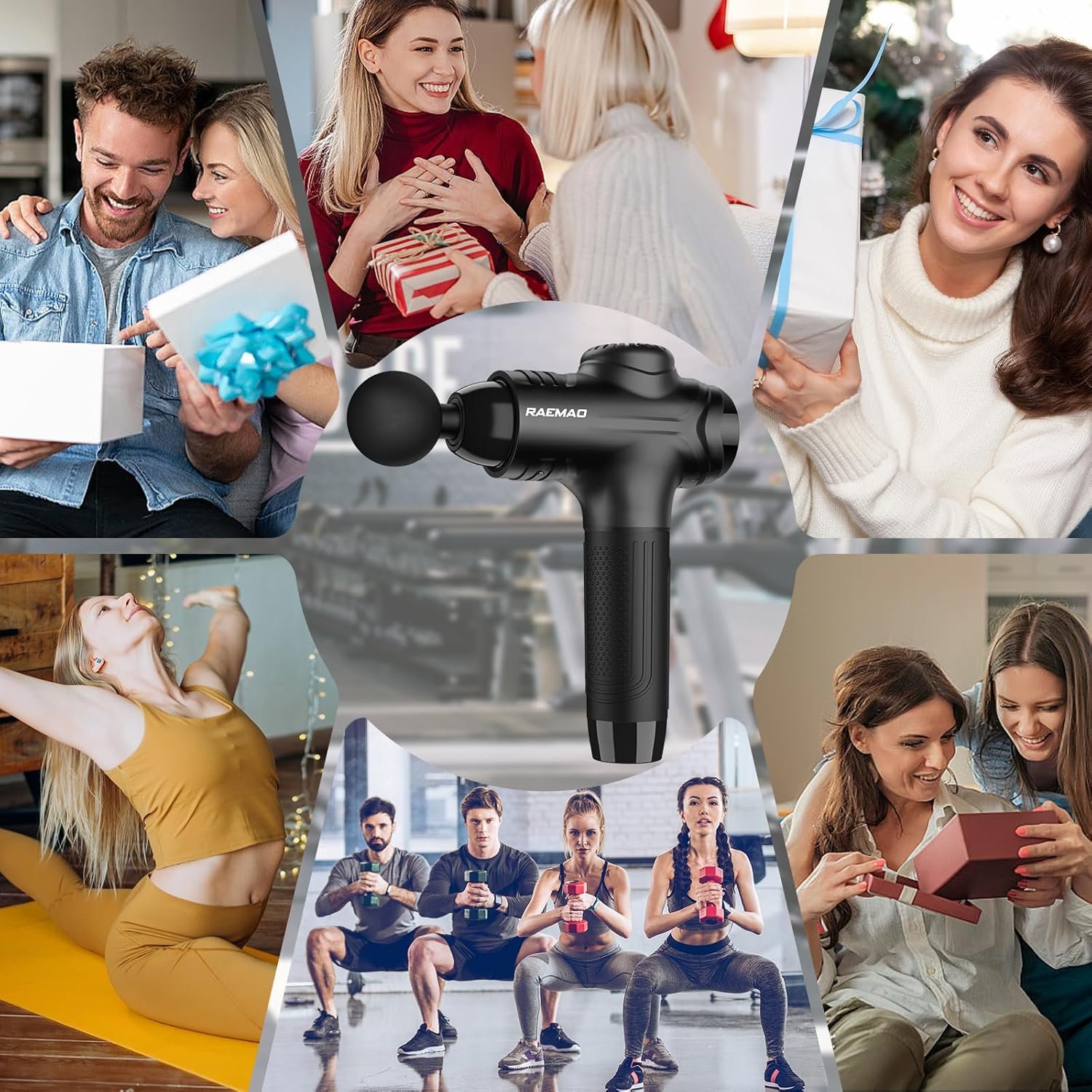Pain Relief: RAEMAO 12mm deep tissue massage gun is designed to target muscle stiffness, pain, and tension with precision. With a powerful 3200rpm speed, it not only helps reduce post-exercise soreness but also promotes blood circulation and alleviates office fatigue, ensuring comfort throughout the day