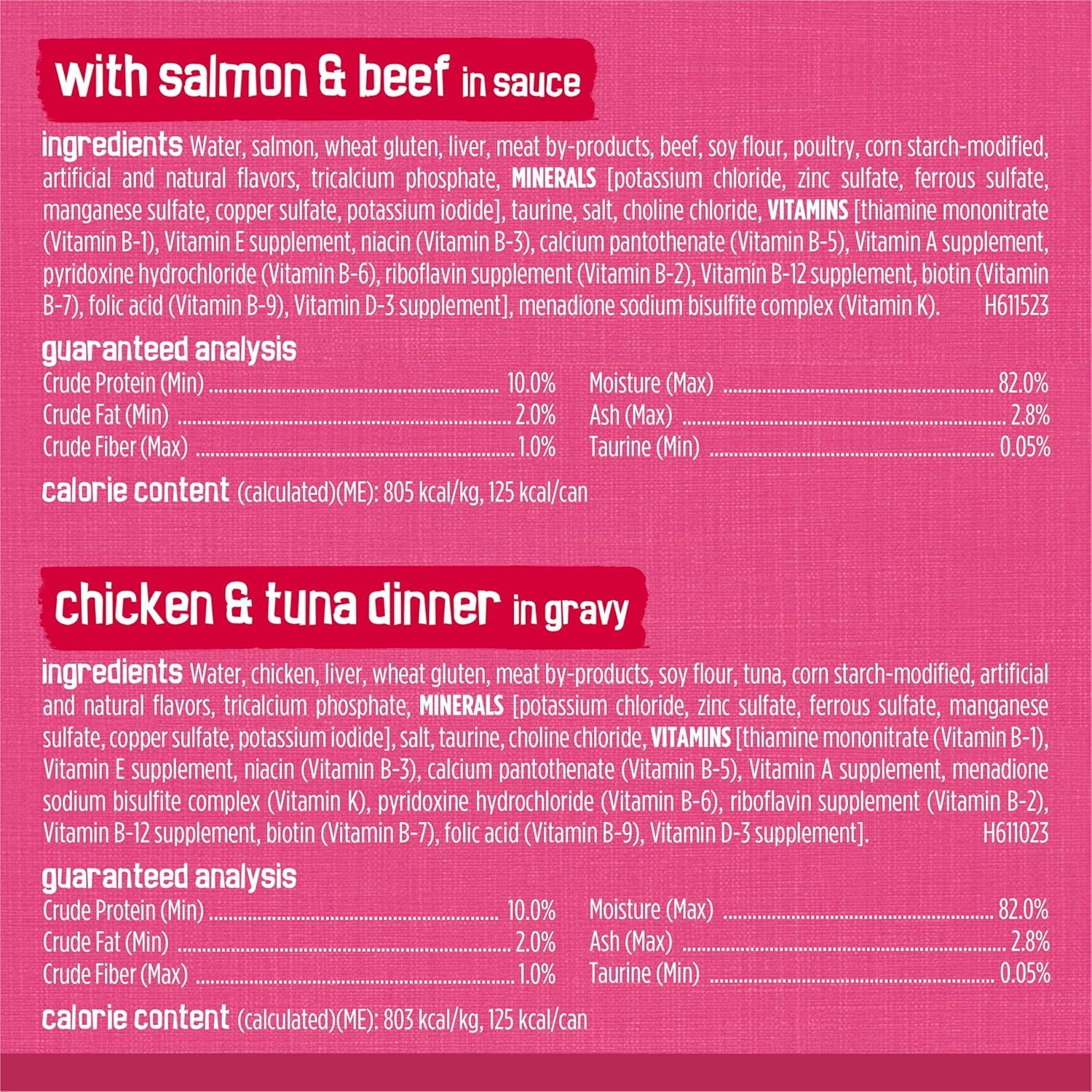 Canned cat food variety pack formulated to meet or exceed industry standards for cat food