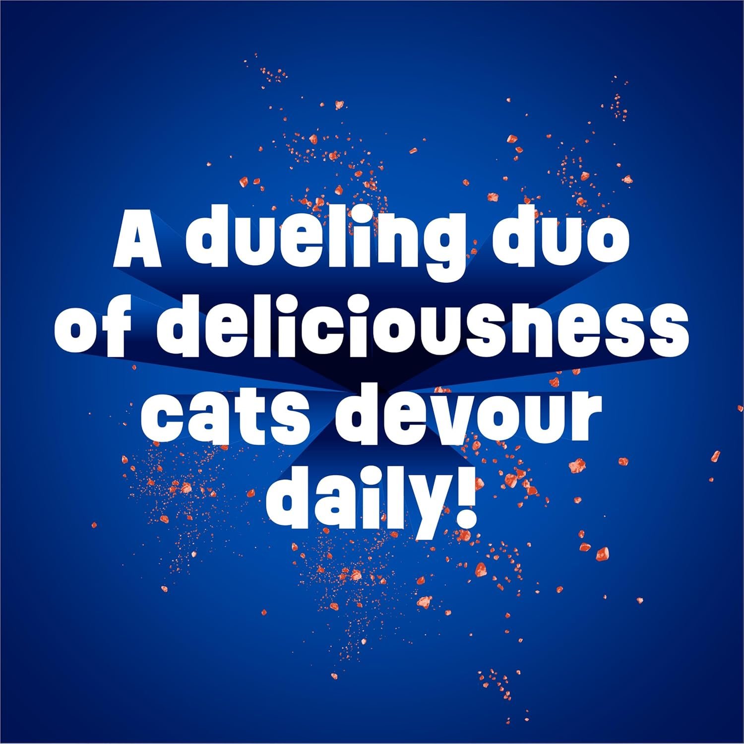 Cat kibble featuring meaty tenders and crunchy bites for a tempting texture combination, made with flavors of real chicken and beef