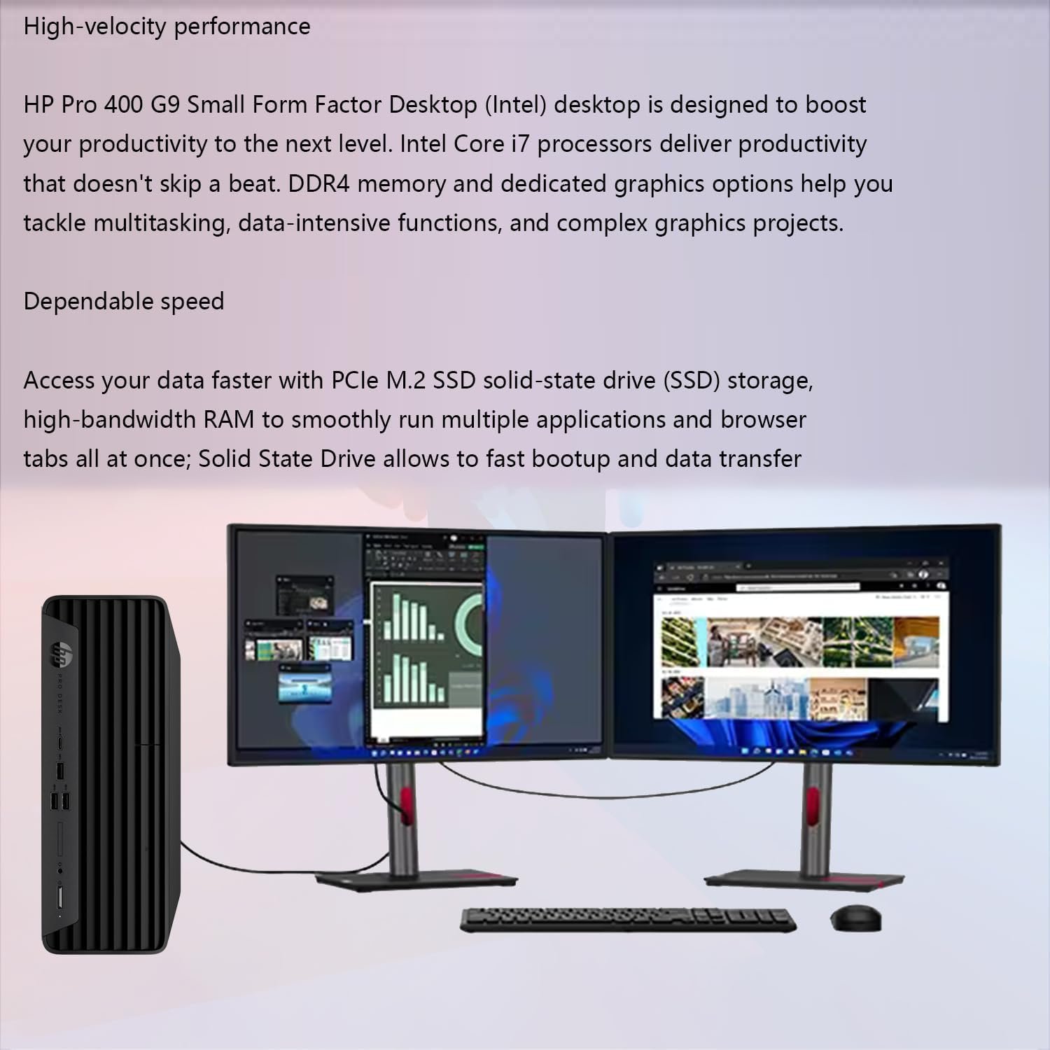 HP Pro 400 G9 Small Form Factor Desktop Computer | Intel Core i7-12700 | 32GB RAM | 1TB PCIe SSD | 2-Monitor Support 4K | Wi-Fi 6 | HDMI | Type-C | DP | Wired Keyboard and Mouse | Windows 11 Pro
