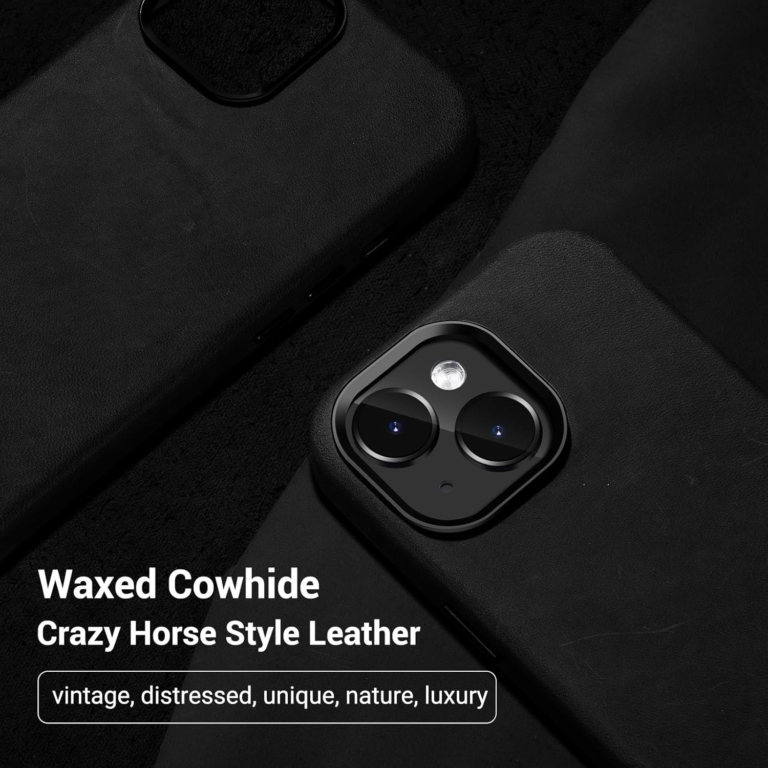 Premium Quality Leather: Our leather wrapped case with MagSafe is made of top-grain waxed crazy horse leather from USA. Lined with premium microfiber, cradles your phone in a soft, velvety embrace. Our leather cover compatible with iPhone 15 boasts a distinctive vintage style that sets it apart from the ordinary, exudes timeless elegance and ages beautifully over time