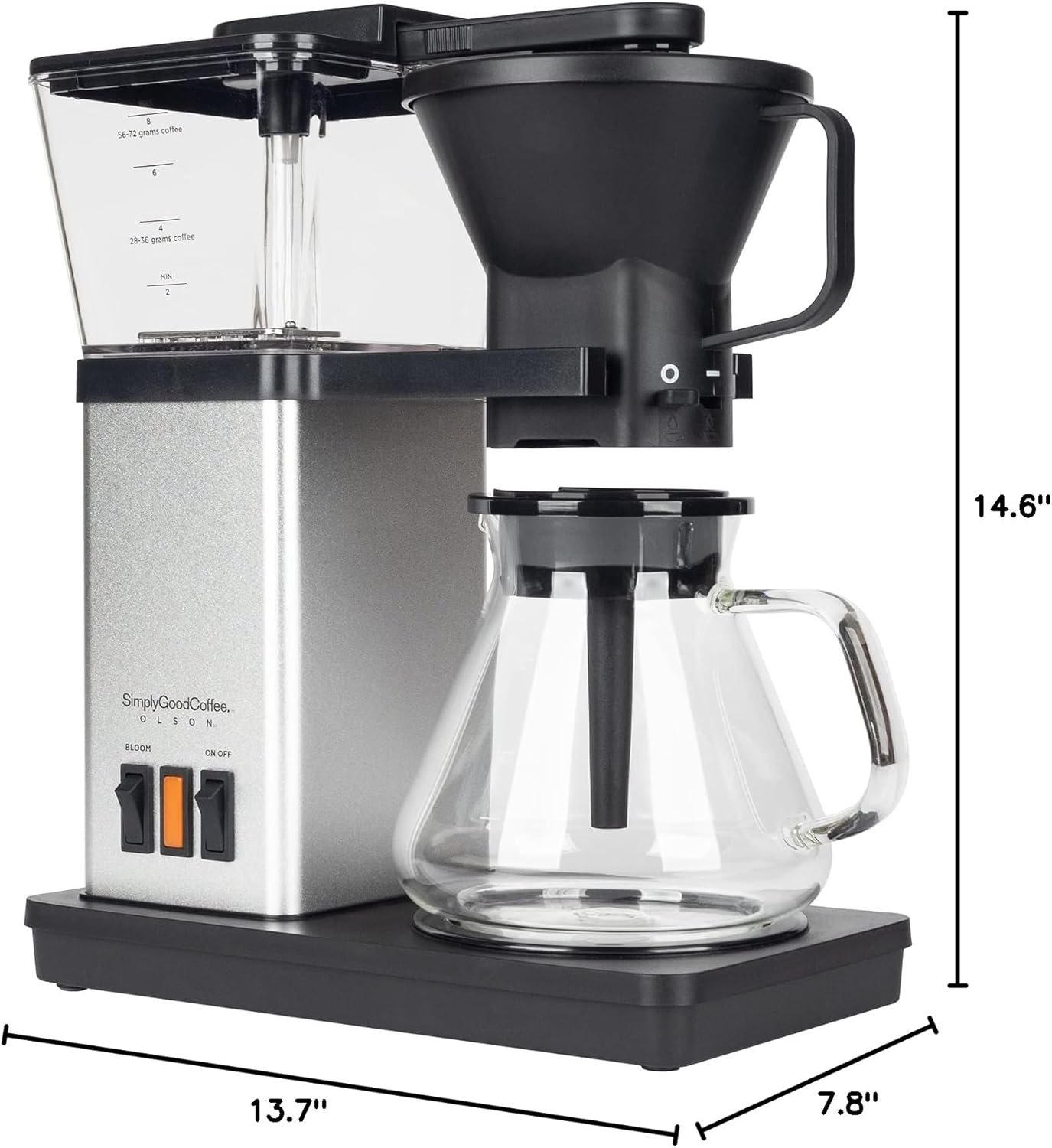 Customers find the coffee maker produces full-bodied coffee and appreciate its simple, no-frills design. The machine works well and has a bloom function, with one customer noting it distributes oils and flavor evenly through the carafe. The build quality receives mixed feedback – while some find it reliable, others say the carafe is extremely fragile. Temperature control is also mixed, with some finding the coffee adequately heated while others say it cools within ten minutes. Value for money opinions are divided between those who find it reasonably priced and those who think it’s not worth the cost.